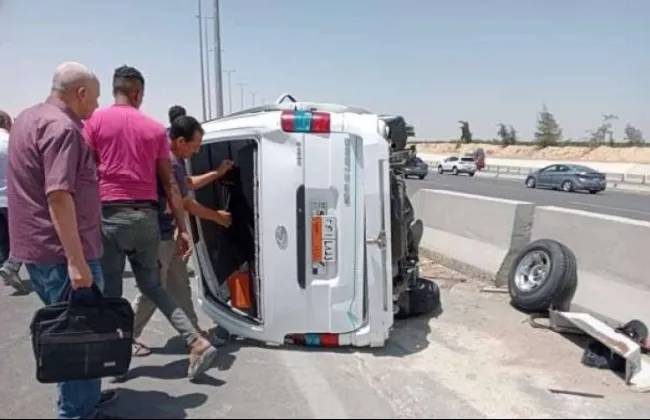 إصابة 16 شخصا فى انقلاب سيارة على الطريق الصحراوى الغربى بالمنيا