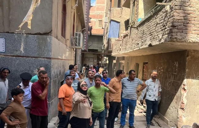 انهار عقار سكني مكون من طابقين بمنطقة البراجيل فى أوسيم، مما أدى إصابة سيدة وطفلها