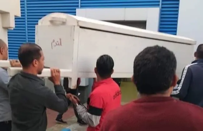 من المشرحة بمستشفيات محافظة بورسعيد، عقب الانتهاء من إجراءات التصريح بالدفن والغُسل والتكفين