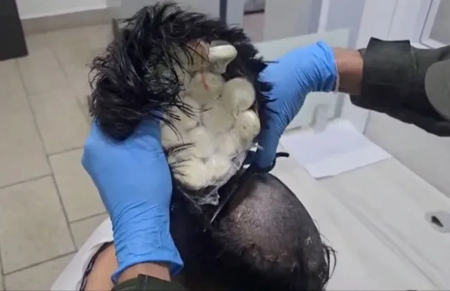 تعادل 400 جرعة، مخبأة داخل باروكة يرتديها، حسبما قالت صحيفة كولومبيانو