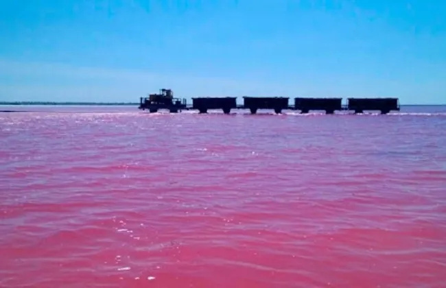 على ما يبدو فوق بحيرة وردية اللون فى غرب سيبيريا تجربة غريبة للغاية