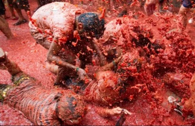 مهرجان الطماطم حدث يجتمع فيه الناس بإسبانيا ليرشقون بعضهم ....