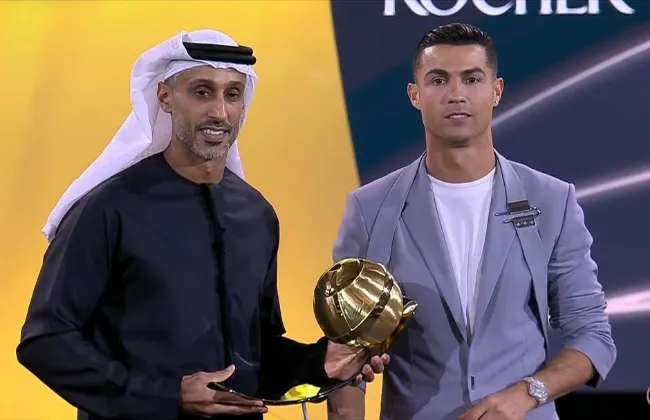 توج النجم البرتغالي كريستيانو رونالدو، مهاجم النصر السعودي، بجائزة أفضل لاعب في الشرق الأوسط