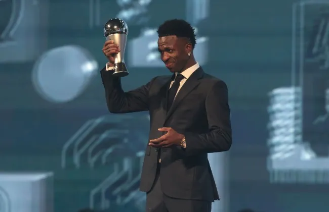 توج النجم البرازيلي فينيسيوس جونيور، لاعب ريال مدريد، بجائزة أفضل مهاجم في العالم 2024 من