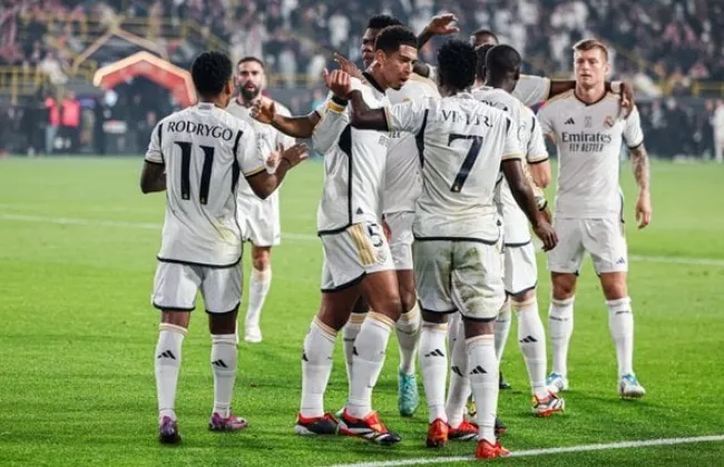 تقدم جود بيلينجهام بالهدف الأول في الدقيقة 30 من ركلة جزاء، وأضاف كيليان مبابي الهدف الثاني