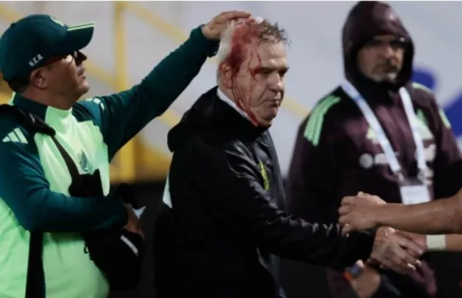 وتلقى أجيري مدرب المكسيك ضربة قوية من زجاجة مياة غازية عقب نهاية المباراة، التي خسرها منتخب المكسيك