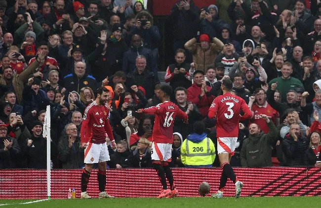 أحرز هدفى مانشستر يونايتد فى الشوط الأول، البرتغالى فيرنانديز لاعب خط الوسط الذى احتفل