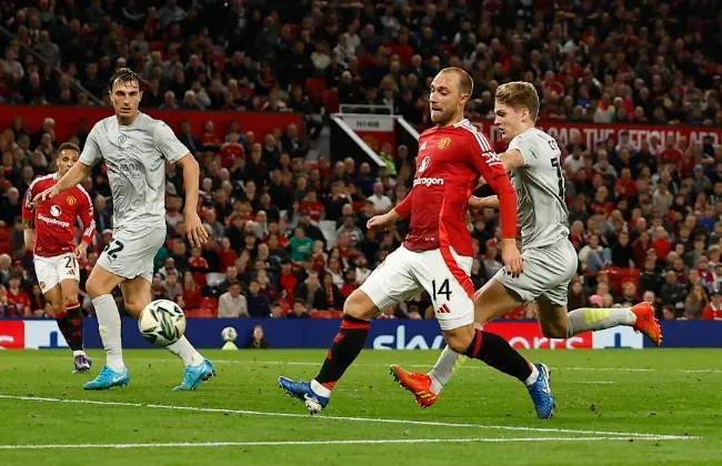 مان يونايتد ضد تفينتي.. الشياطين الحمر يتفوقون بهدف إريكسن فى الشوط الأول