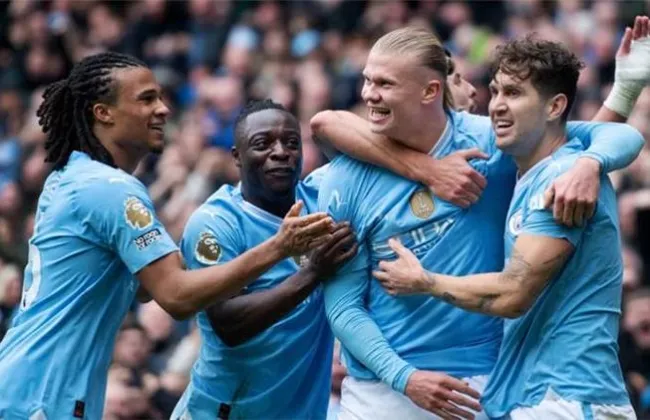 أحرز إيرلينج هالاند الهدف الأول لصالح مان سيتي ضد أرسنال بالدقيقة التاسعة من زمن المباراة