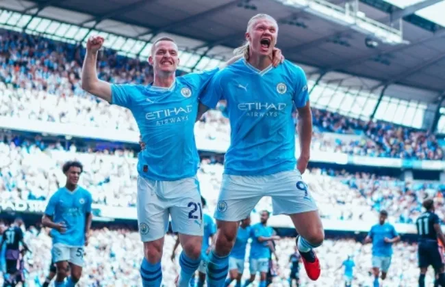 مان سيتي ضد إبسويتش تاون جاءت الأهداف عن طريق كل من إيرلينج هالاند هاتريك