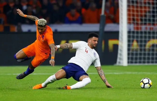 بدأ منتخب هولندا التهديف عن طريق لاعبه الشاب تشافي سيمونز، بعد مرور 7 دقائق، من تسديدة قوية سكنت على يمين بيكفورد حارس إنجلترا