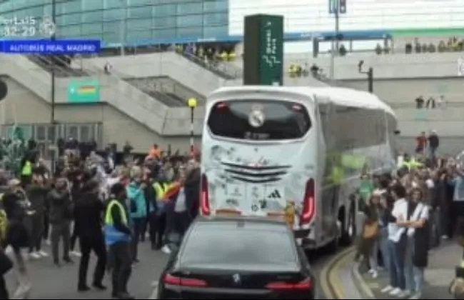 وصلت حافلة ريال مدريد الإسباني، إلى ملعب "ويمبلي"، منذ قليل استعدادًا لمواجهة بوروسيا دورتموند العاشرة مساء اليوم السبت، في نهائي دوري أبطال أوروبا الموسم الجاري 2023-2024
