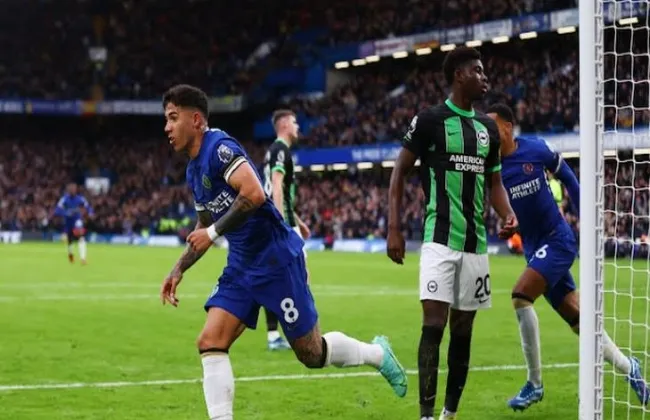 برايتون ضد تشيلسي وسجل كول بالمر هدف تشيلسي في الدقيقة 34 من زمن اللقاء، من رأسية رائعة سكنت على يسار حارس برايتون، مستغلاً عرضية من زميله كوكوريلا