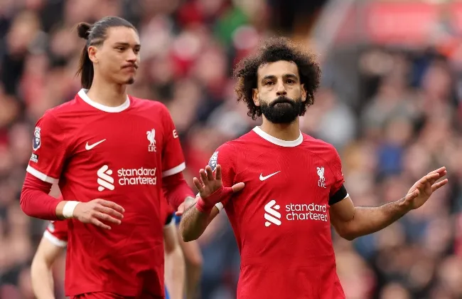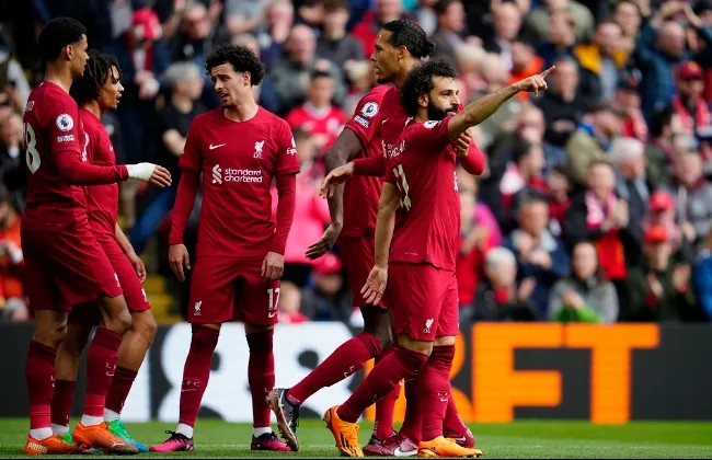 أليسون؛ ألكسندر أرنولد، كوانساه، فان ديك، روبرتسون؛ إندو، إليوت، ماك أليستر؛ محمد صلاح، دياز، جاكبو