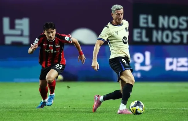 تقدم روبرت ليفاندوفسكي بالهدف الأول لصالح فريق برشلونة أمام سول