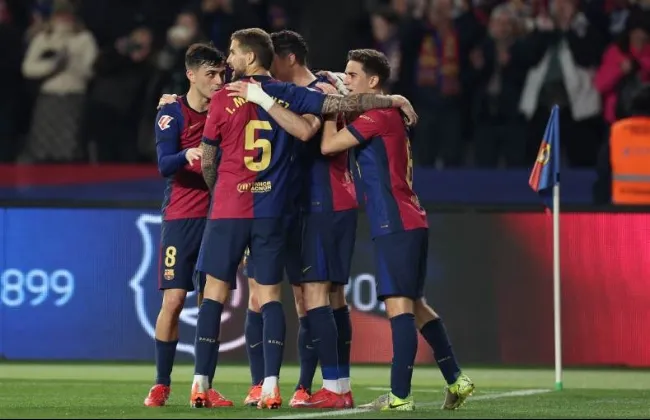 قائمة برشلونة تضم: تشيزني، بينيا، كوبارسي، بالدي، أراوخو، مارتينيز، جافي، توريس، بيدري، ليفاندوفسكي، فاتي، رافينيا، توري، كريستينسن، فيرمين، فيكتور، يامال، دي يونج، كوندي، جارسيا، كوشين، فورت، ومارتن.