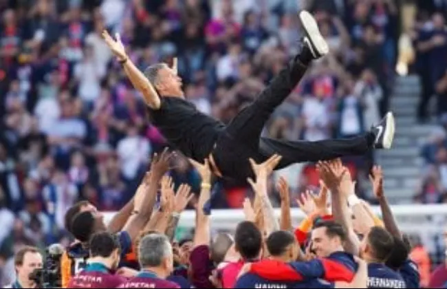 لويس إنريكي يحتفل بمباراته الـ100 مع باريس سان جيرمان خلال مواجهة أستون فيلا بدوري الأبطال